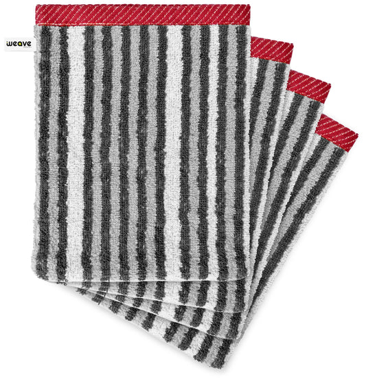 4 Pc Wash Gloves - 15x20cm, Solid Striped 100% Cotton, Soft & Absorbent Wash Mitt, Makeup Remover & Soft Cleansing Facial Mitts